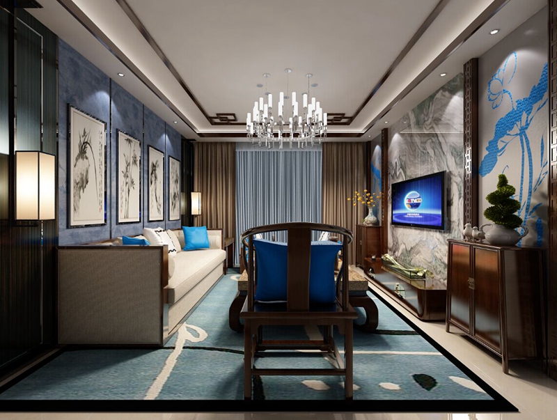 本方案整體設(shè)計以新中式風格為主,設(shè)計中將現(xiàn)代元素和中國傳統(tǒng)元素相結(jié)合,體現(xiàn)了中國式的古典美,一些家具的選配上主要體現(xiàn)了現(xiàn)代風格的簡約美。在家具形態(tài)上更加簡潔清秀,同時又打破了傳統(tǒng)中式空間布局中等級、尊卑等文化思想,空間配色上也更為輕松自然。