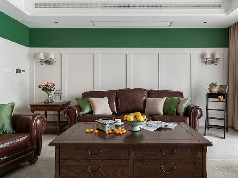 客廳作為這個(gè)家中活動(dòng)最多的地方,溫馨、舒適必可不少。白色的墻面深綠色點(diǎn)綴,給人視覺上的放松,讓空間更有靈動(dòng)性。皮沙發(fā)與布藝沙發(fā)的錯(cuò)落搭配,滿足一家人的日?;顒?dòng)所需。