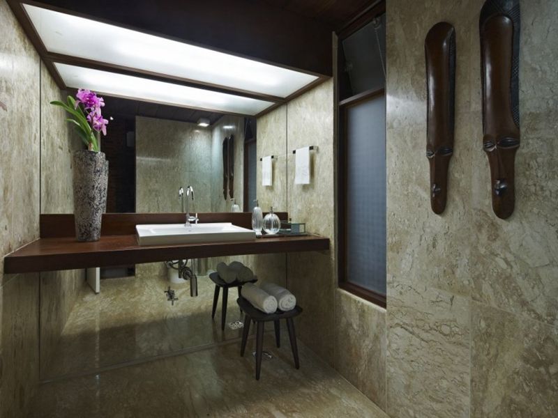 東南亞風格廣泛地運用木材和其他的天然原材料,如藤條、竹子、石材、青銅和黃銅,深木色的家具,局部采用一些金色的壁紙、絲綢質(zhì)感的布料,燈光的變化體現(xiàn)了穩(wěn)重及豪華感。