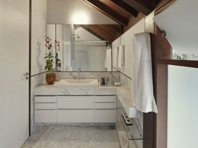 衛(wèi)生間可采用石材與鏡子的設計為其增加變化。奢華既非繁雜的雕飾,更非金碧輝煌的裝飾,只要充分地運用材質(zhì)的特點,現(xiàn)代的設計也可以傳達視覺與舒適的平衡。