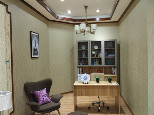 墻磚形式的背景墻設(shè)計,加上新中式效果的吊頂,再增添一點美式風(fēng)格的沙發(fā)背景墻,鑒于空間大小,配置現(xiàn)代簡約風(fēng)格的布藝沙發(fā)、茶幾等家具、床、書桌書椅書柜、餐桌餐椅,還是別有一番風(fēng)味的,根據(jù)自己的喜好,在專業(yè)的設(shè)計師指導(dǎo)下,就有屬于自己的感覺。